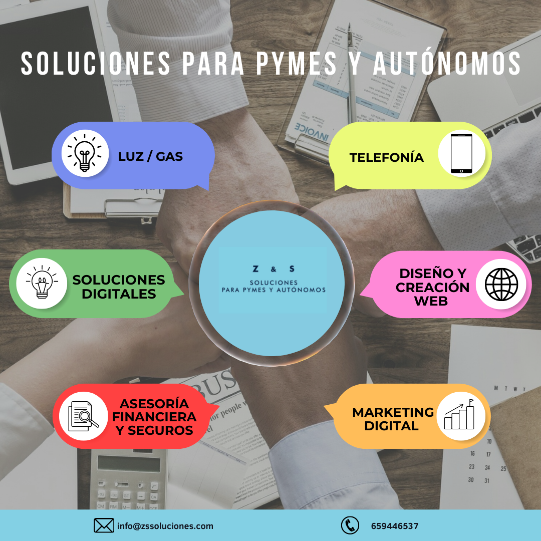 Z&S Soluciones para Pymes y Autónomos, somos una consultoría de servicios para empresas, ¡Facilitamos tus contrataciones y Reducimos Costes de tu pequeña empresa, Para nosotros la Más Grande! Ayudamos a Pymes y Autónomos, a reducir costes y mejorar sus servicios y soluciones, con servicio de consultoría en tres ramas: